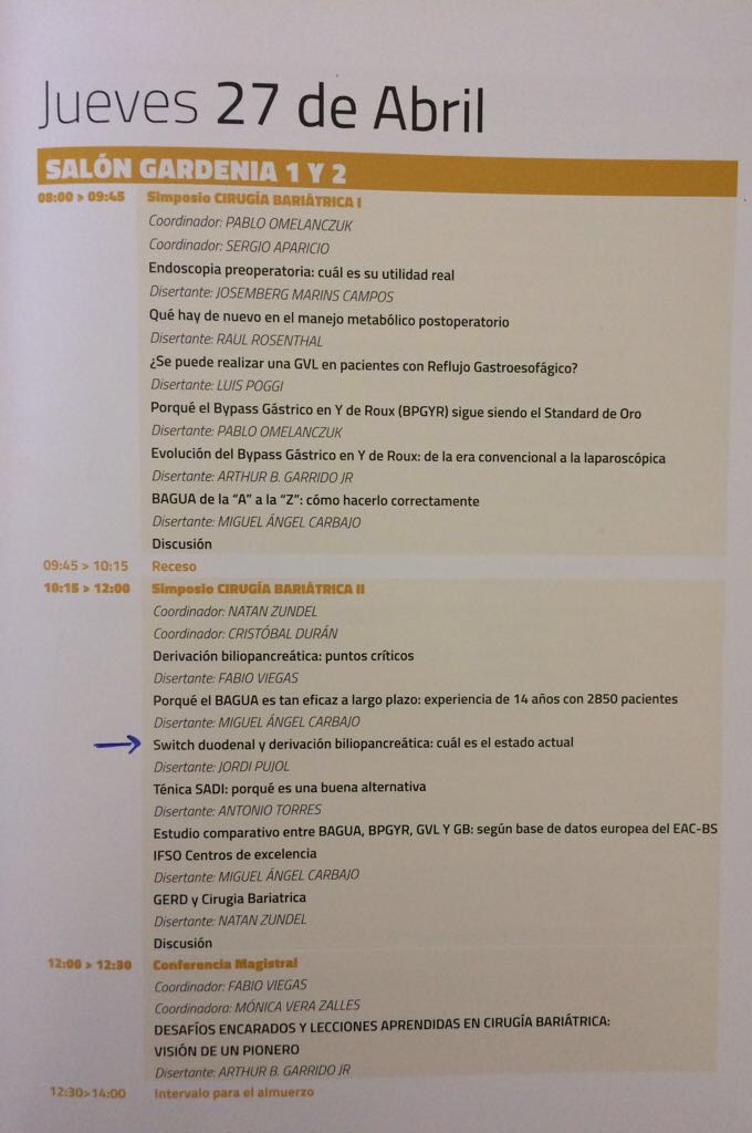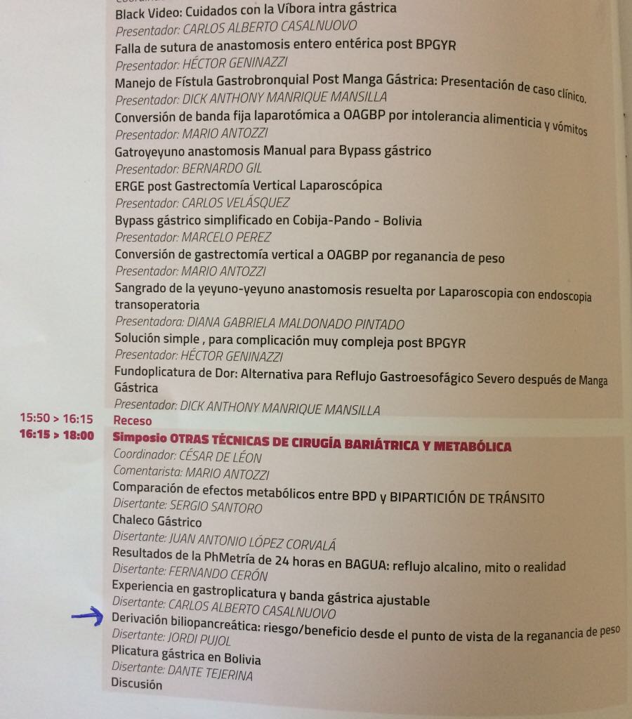 Del 26 al 29 de abril del 2017 ha tenido lugar en Santa Cruz de la Sierra, Bolívia, el Congreso latinoamericano 2017 sobre Cirugía barbárica y metabólica, el cual ha reunido los mejores cirujanos internacionales.