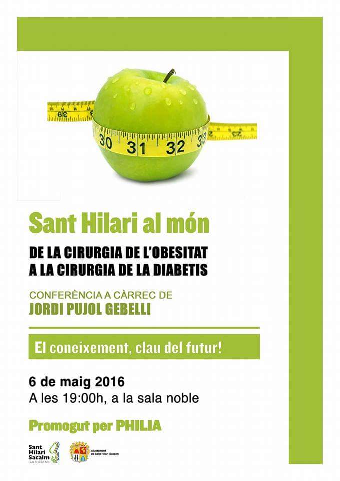 Conferencia en Sant Hilari Sacalm a cargo del Dr. Jordi Pujol Gebelli "De la cirugía de la obesidad a la cirugía de la diabetes" 06-05-2016